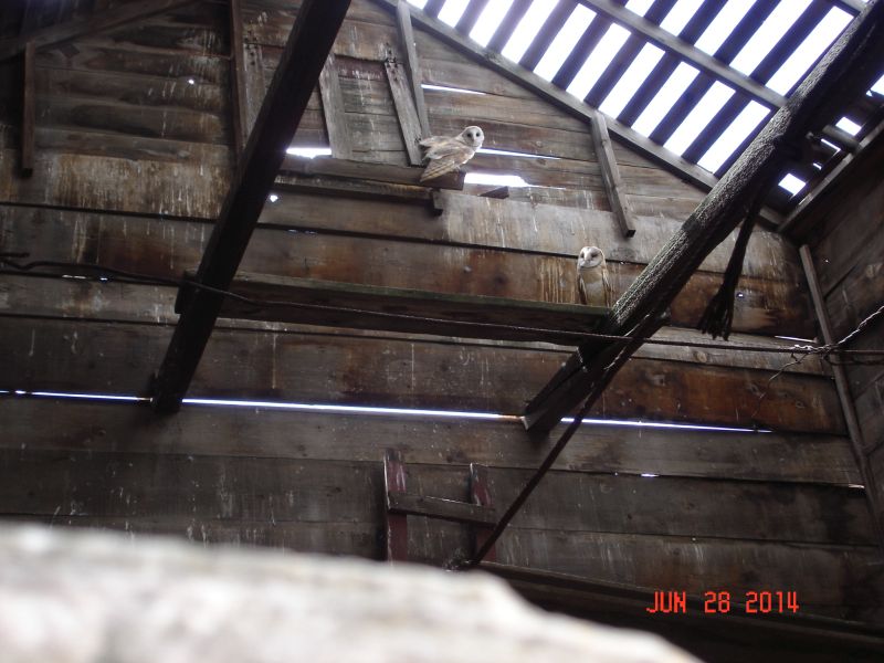 "Two Owls in one of the old buildings"