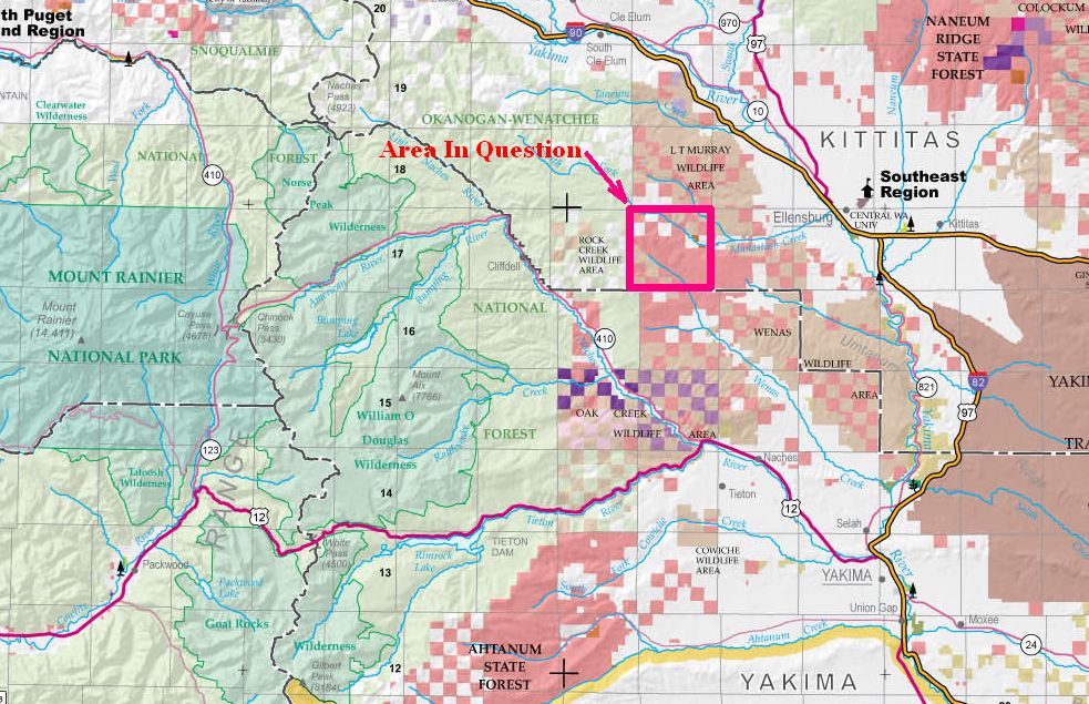 This means the normal access roads to National Forest Lands & Trails west off FR 1701 are closed to vehicles from the North & East Sides. The only access from Ellensburg is to go around to the Wenas and go up the Hog Ranch Road. The other access would be go up Bald Mt. Road from 410 & out FR #1701.