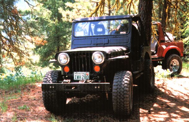Kirk built his 1945 Flat Fender (CJ2A now) before he had his driver’s license. He started with a CJ5 frame and a body off an old mail carrier jeep. At this time he is running a Buick 225ci V6 and a Ford 10 bolt tranny, modified to top shift like mine. His running gear is homebrew 44 open knuckle front with disk brakes and homebrew 44 rear with disk brakes. (Both ends locked up) Power Steering of course. He has a Ramsey power take off winch with 150’ of cable. You will be able to see his Jeep in stages in the Jeep picture album when I add them. Kirk did all the work on his rig himself !