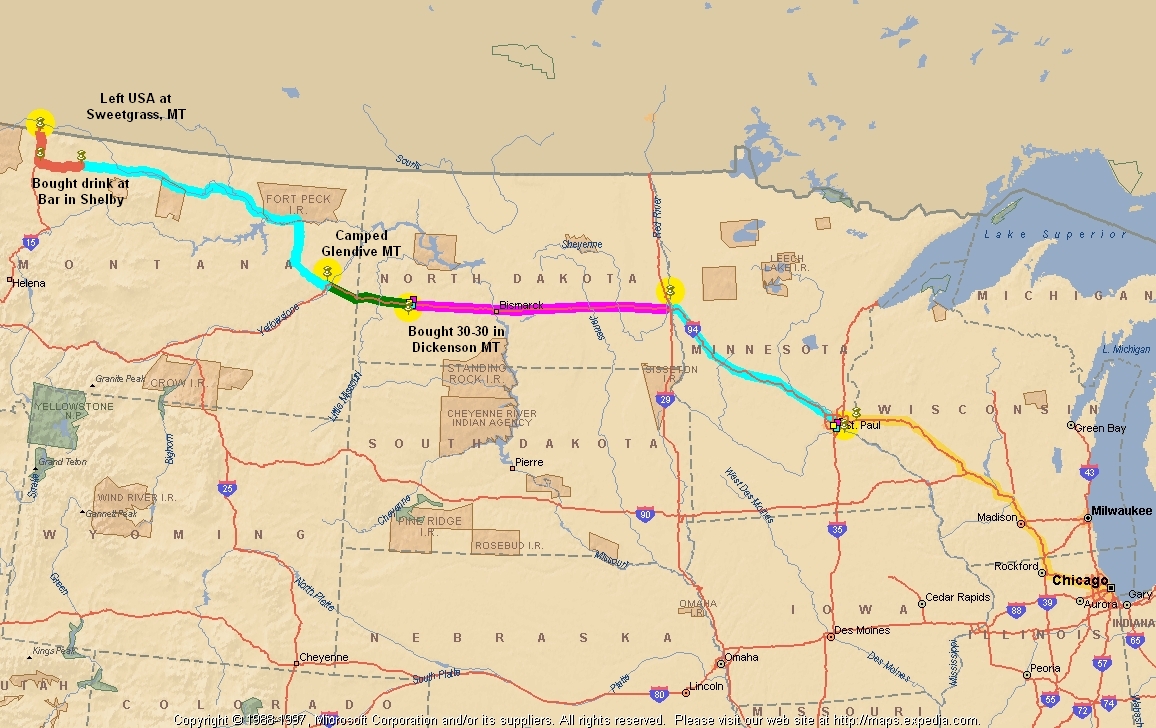 "At that point we think we took Route's 200s and 13 to Wolf point which joins with Route 2 west. We remembered stopping at the Silver Dollar Saloon at Shelby, Mt. for a drink before turning north to Sweetgrass, Mt. Leaving the US, and going into Alberta, Canada on Route 4. This route then connects with Route 2 at Fort Macleod, and up to Calgary and Edmonton."