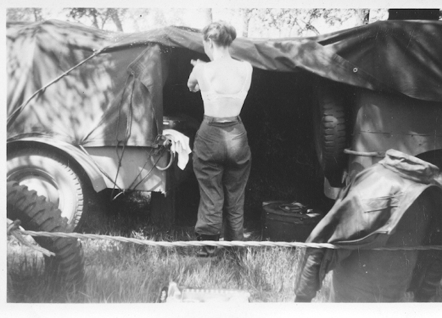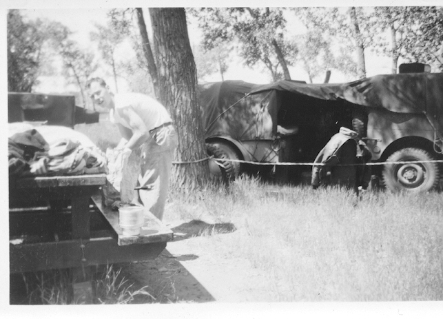 Also have pictures taken while they were resting, and camping at a trailer park in Glendive, Montana. Eileen washing up Gib cooking ? Gib writing home