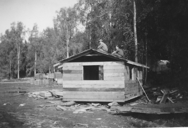 Eileen and Gib arrived in Anchorage July 21 1947 to find an acute housing shortage. They decided to make a claim on some land and build their own house. They camped for 3 days at a camp site, paying $.25 a night to Langs Store. The store was located in Mountain View just out of Anchorage.