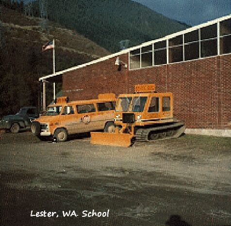 Picture of the Lester, Washington School Bus yard. The Snow Cat Bus was used in the winter to pick up students.