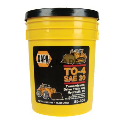 Napa Oil Part Number: NHF 85305 (meets Cats TO-4 Specs) $84.99 for 5 gal pail Product Line: NAPA Hydraulic Fluid - Regular States Attributes: Container Size : 5 GAL Manufacturer : Martin Lubricants Product Application : Caterpillar Transmission, Final Drive, Hydraulic Fluid Recommended Transmission Type : T0-4, C-3 & C-4 Transmission Fluid Style Name : SAE 30W Hydraulic Oil Contents : (1) Pail Manufacturer Part Number : 85-305