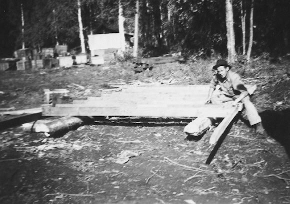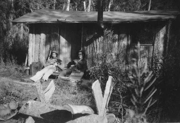 Cotton wood slab shack which was built by the Crousy brothers
