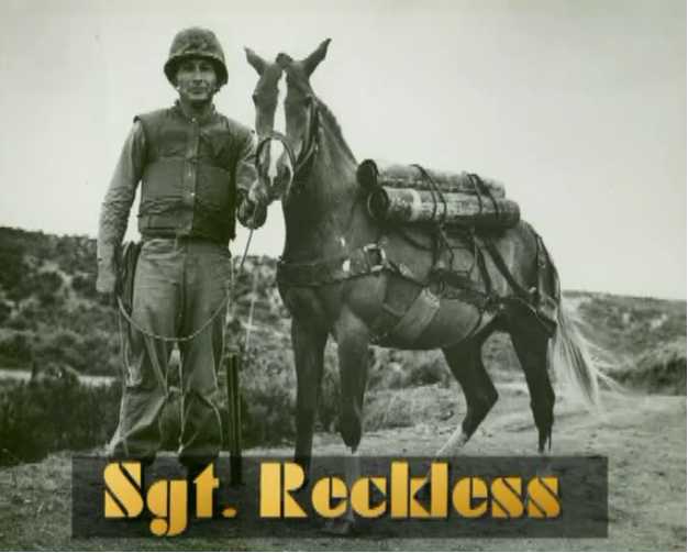 Reckless was a pack horse during the Korean war, and she carried recoilless rifles, ammunition and supplies to Marines. Nothing too unusual about that, lots of animals got pressed into doing pack chores in many wars.