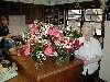 Mom with flowers Doug & Les sent. Her 80th Birthday in Sequim home 6/12/2003 |