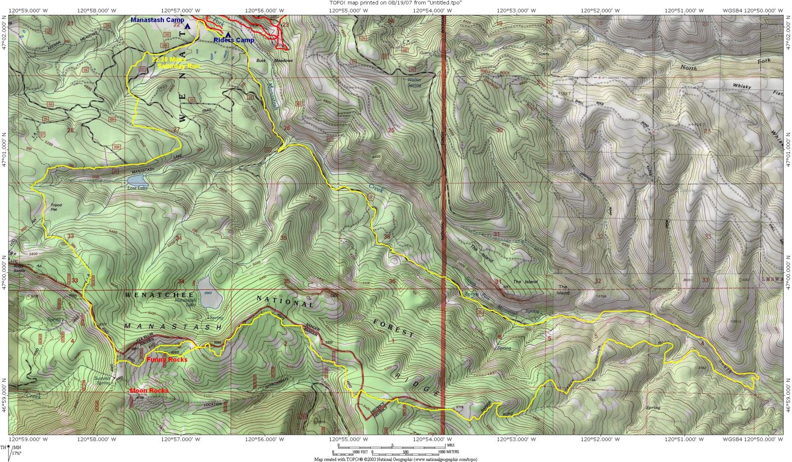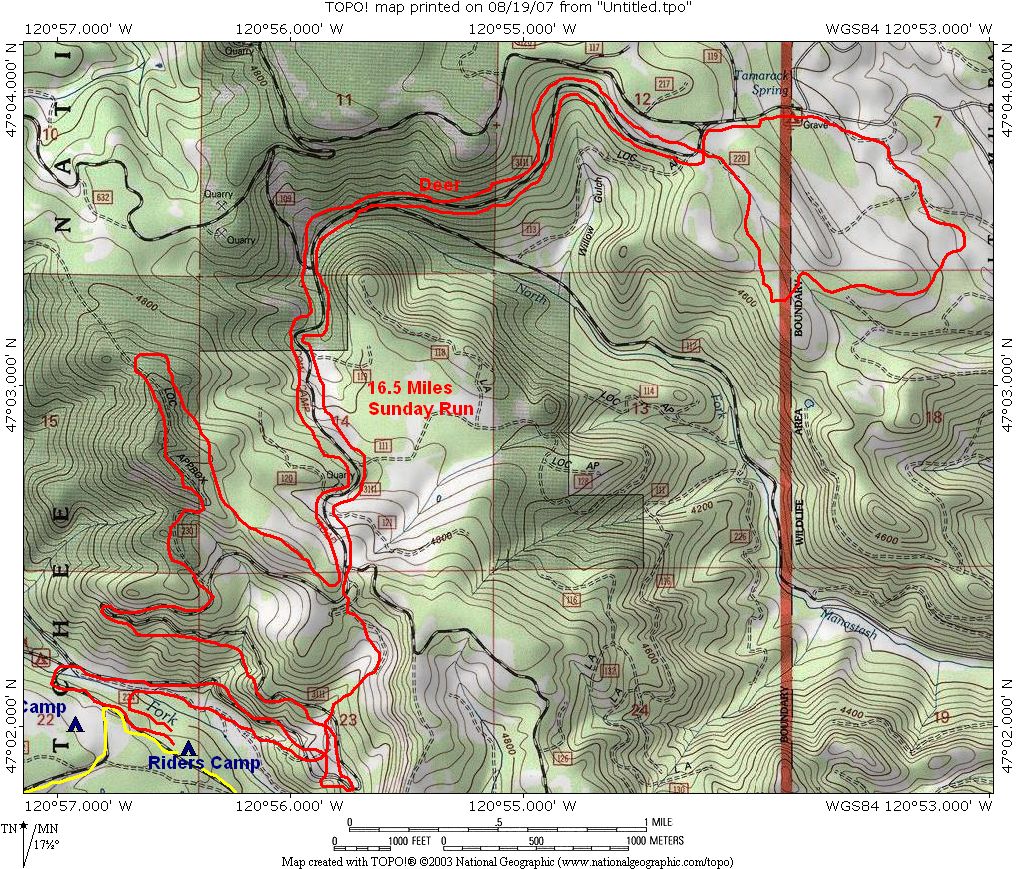 Saturday we ran from Riders Camp up FW307 to Tripod Flats and then to the ridge. Took trail 694 over to Funny Rocks and then on out to Fence and the Barber Springs road. Down to South fork Manastash and back to Riders Camp.