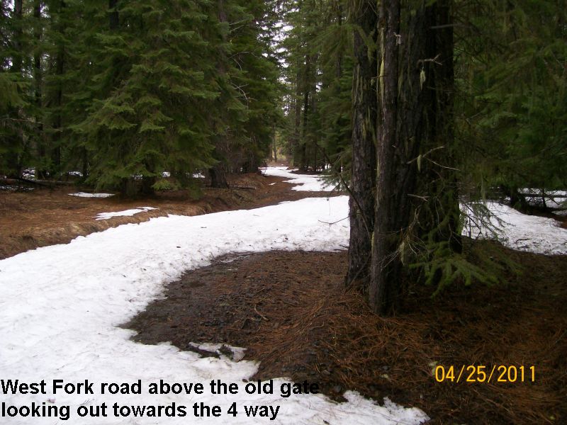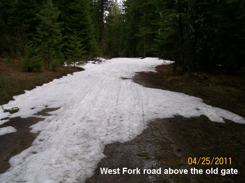 Mike went over to scout out the road 4/25/2011. Found the West Fork road snowed in before our gate. Took a hike up the road and up the Wildlife trail and found patches of snow everywhere. Would be good riding if you could get into camp. In the Middle Fork the road into Indian Camp is also blocked by snow just off the end of the blacktop. The North Fork has been plowed up past the Guard Shack (Above Stafford Creek intersection)